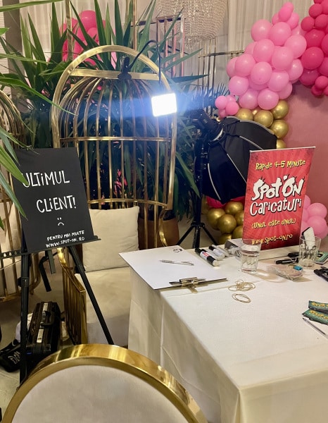 Desenând caricaturi la o nuntă internațională la Bragadiru aseară, la Nouvelle Events. Delia și Jerome m-au invitat să-și distrez oaspeții francezi/români toată seara și le-au plăcut desenele. Locul a fost foarte impresionant și foarte funky. Aștept cu nerăbdare să revin curând, poate pentru nunta TA?