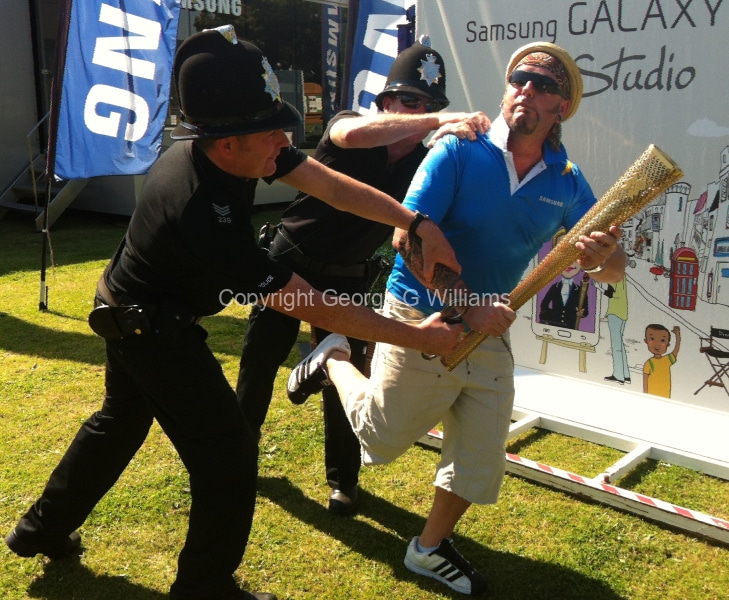 Olympic flame caricaturist